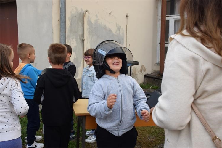 Tom prigodom mališani su se susreli s policijskim službenicima Interventne policije te policijskim službenicima Policijske postaje Pleternica, koji su ih upoznali s poslom policajca i različitim zadaćama koje svakodnevno obavljaju.