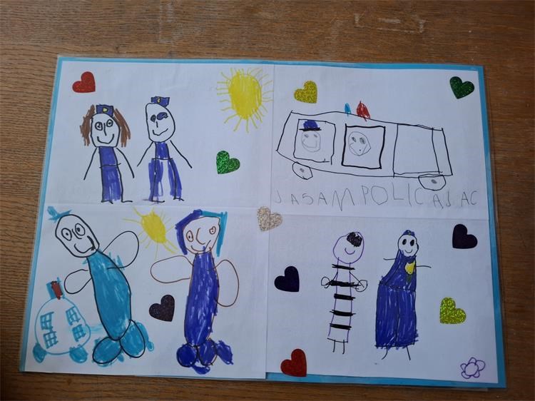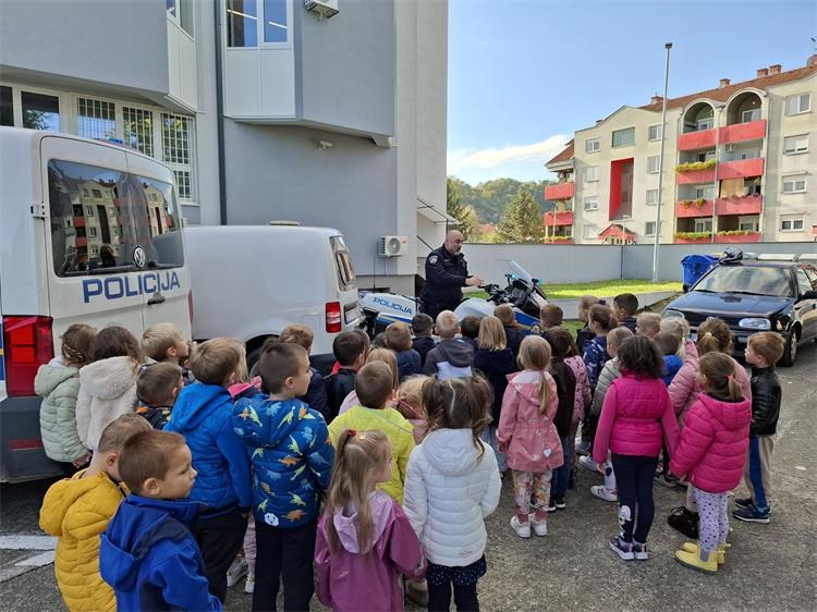 Tijekom posjeta djeca su se susrela s policijskim službenicima koji su im na parkirališnom prostoru, predstavili policijska vozila i opremu. Posebno oduševljenje izazvala je mogućnost ulaska u službena vozila, gdje su mališani imali priliku isprobati svjetlosnu i zvučnu signalizaciju. Djeci je bio omogućen i obilazak službenih prostorija, a na kraju su policijskim službenicima uručili crteže koje su izradili na temu policije.